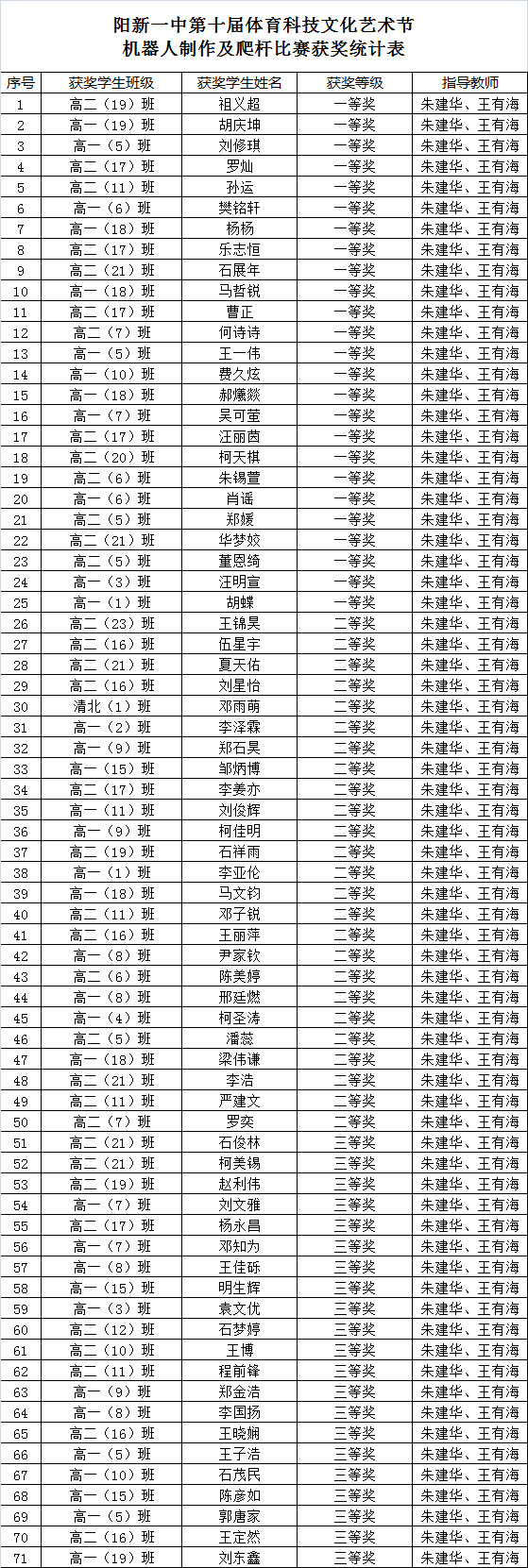 爬杆机器人比赛再次纳入艺术节科技项目比赛内容,是学生比较感兴趣的活动,重在考查学生的动手能力与创新意识。赛前,朱建华、王有海两位老师对爬杆机器人制作比赛选手进行了培训,有113名学生参加培训,最终筛选84位同学参加艺术节期间的比赛。