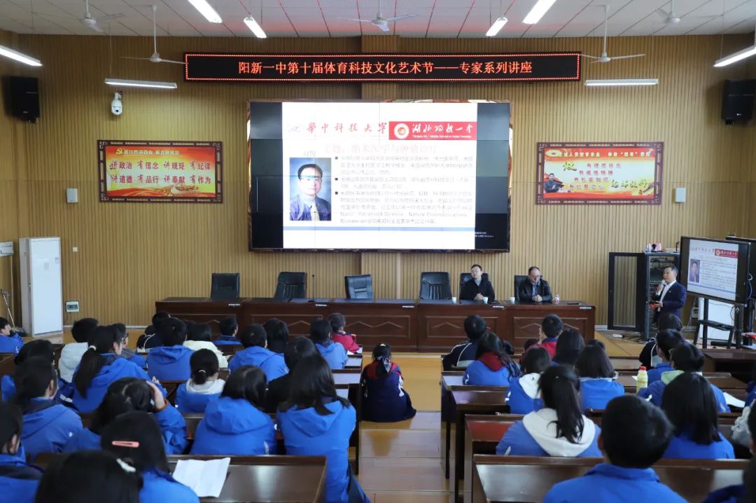 冬日暖阳贵,微风愈人间。在阳新一中第十届体育科技文化艺术节隆重开幕之际,11月29日下午,华中科技大学同济医学院基础医学院教授赵俊走进了阳新一中,高三重点班学生聆听报告,报告由课改办主任汪洋主持。