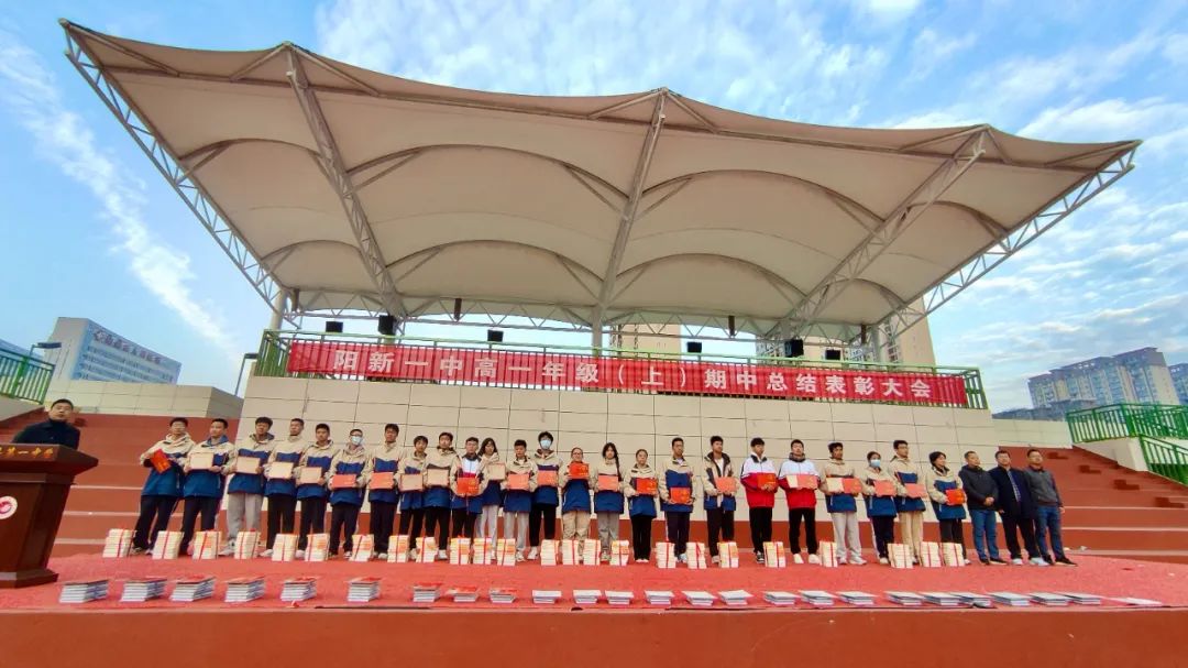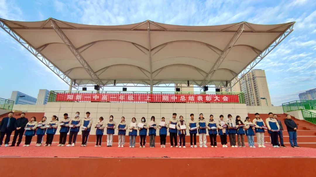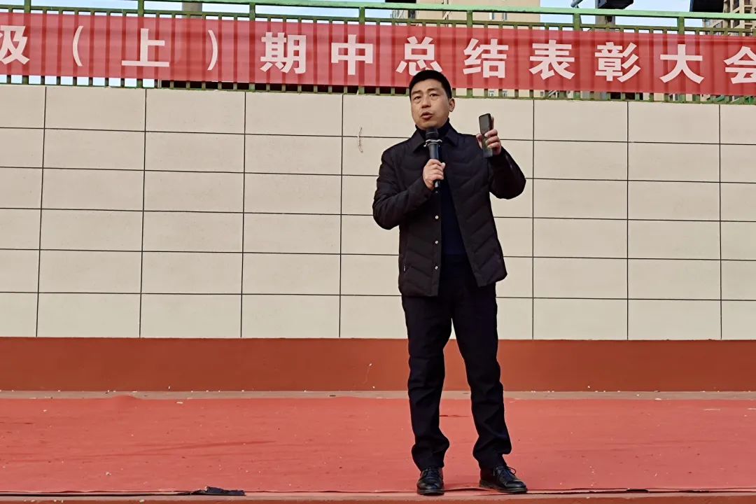 辛勤汗水,换来丰硕成果;一分耕耘,定有一分收获。为表彰期中考试优秀学子,及时从艺术节的放松欢愉转移到紧张充实的学习中来,高一年级于2023年12月4号早晨7点在运动场举行了期中考试总结表彰大会,此次大会共有四个议程,由年级主任程志勇老师主持。