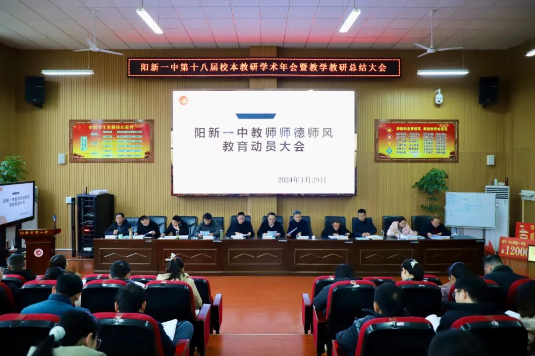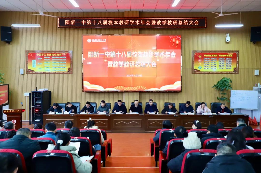 为全面总结我校2023年度教学教研工作,进一步搭建教师专业成长平台,促进高品质高中学校的建设,1月29日下午,阳新一中在明德楼报告厅召开第十八届校本教研学术年会暨教学教研总结大会。县教育局局长李细禄、县教科院院长柯于涛出席会议,阳新一中党委书记明道树、校长方长风、全体党(校)委成员,全体教师参加大会。会议由阳新一中教学副校长江章令主持。