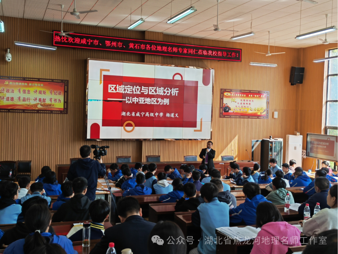 咸宁高级中学的杨道义老师的公开课,主题为《区域地理的复习---以中亚地区为例》。杨老师长期以来致力于教学、教研及高考资料的收集、整理与归纳,展现出了其严谨治学的态度。在公开课中,杨老师所制作的课件精美细致,导学案设计科学合理,极大地提升了课堂的教学效果。在课堂上,杨老师激情满怀,善于调动学生,并通过生动的画图方式,帮助学生建立起对区域地理的深刻认知,使学生们掌握了“定位”这一关键技能。整堂课下来,学生们不仅感受到了地理学习的魅力,也切实掌握了区域地理学习中“定位”的核心要点。杨道义老师的教学方法和技巧给在场的师生留下了深刻的印象,充分展现了一位教育工作者的厚实与理性。