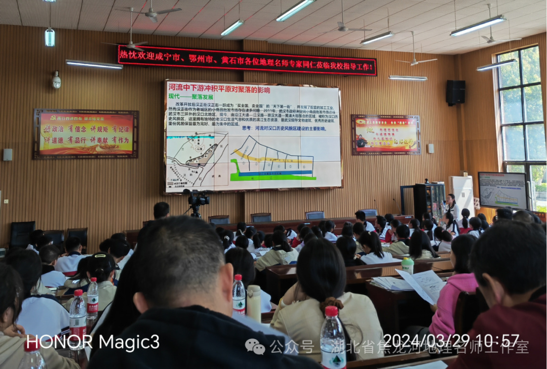 在29日上午的公开课展示环节,鄂州高中张满、咸宁高中杨道义、阳新一中李宸和赤壁一中贡梦豪等老师在高中地理分会场进行了示范课讲授;阳新富川中学包蕊、咸宁高新实验外国语学校金玛娜、温泉中学杨碧涵和黄石十六中李婷等老师在初中地理分会场进行了现场授课。
