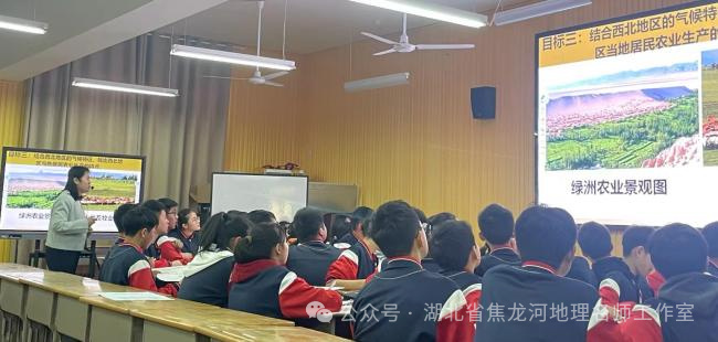 黄石市第十六中学的李婷老师,新授课的课题为《中国四大地理区域之西北篇》。她的课堂严谨且富有深度,能引导学生主动探索知识。李老师不仅精通课程与中考考点,还能将知识与学生的实际需求相结合,让学生在轻松的环境中高效学习。在她的课堂上,小组合作成为了一种重要的学习方式,提高了学生的学习效率,并培养了他们的团队协作能力。她鼓励学生积极参与讨论,发挥个人特长,在互相学习、互相帮助的过程中不断成长。对于西北这片神秘而魅力四溢的土地,李老师有深入的研究和独到的见解。她通过精心的课件设计和生动的讲解和悉心的引导,全面展现了西北的自然景观、历史文化和民俗风情,引导学生从多个维度去认识西北,综合思维、区域特征等核心素养目标得到有效的达成。