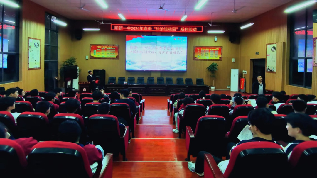 以法护“未”,守护校园净土。为进一步推进校园法治教育,加强校园安全管理,预防校园欺凌和未成年犯罪,2024年4月2日星期二晚上6:30-7:30,我校在明德楼学术报告厅举行了2024年春季学期法治讲座。特邀阳新县人民检察院干警石政大主讲,副校长徐美姝,德育室主任肖鹏,以及高一、高二、高三支部书记和150余名学生代表参加,活动由德育室李鑫老师主持。
