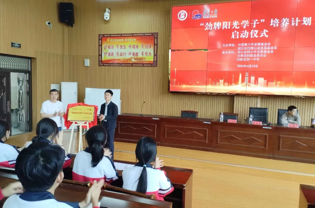 与会全体人员共同观看了希望工程宣传片和劲牌公益慈善宣传片。希望工程“劲牌阳光学子”培养计划由团中央青年发展部、中国青少年发展基金会、湖北省劲牌公益慈善基金会于2023年3月共同发起实施,项目计划3年内全面覆盖国家160个乡村振兴重点帮扶县。其中,高中生资助项目系“劲牌阳光学子”培养计划的重要组成部分,是希望工程助学项目的全新探索,旨在“为党育人,为国育才”,促进教育资源均衡发展,激励困难学子奋发有为,成为有理想、敢担当、能吃苦、肯奋斗新时代青年。