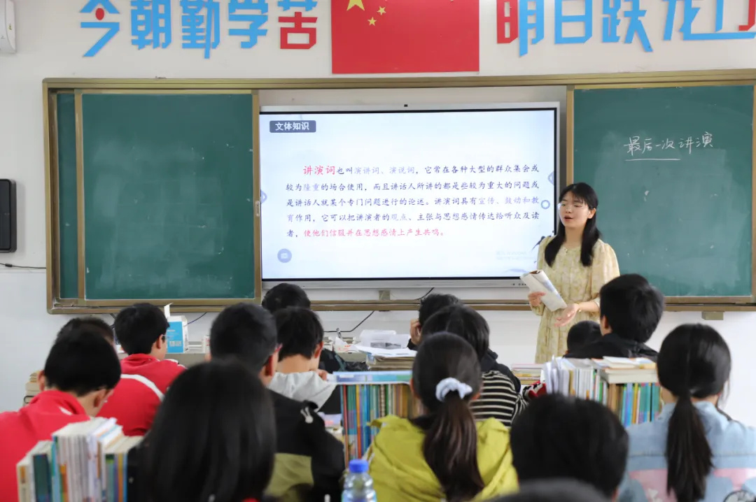 黄石市明道树名师工作室青年骨干教师金艳芳主讲八年级下册第13课《最后一次讲演》。课上,金老师以自己演唱歌曲《七子之歌·澳门》导入新课。在金老师深情的演唱声中,学生们很快被带入闻一多描述的世界。接着,金老师以演讲稿为线索引导学生梳理文章内容,并指导学生穿越时空模拟演讲,以进一步体会演讲稿的特点,体悟闻一多的革命精神。同学们积极参与课堂活动,身临其境地感受着作者爱憎分明的立场态度和视死如归的革命精神。整堂课设计新颖,点拨精当,互动有法,效果明显,获得听课师生的一致好评。