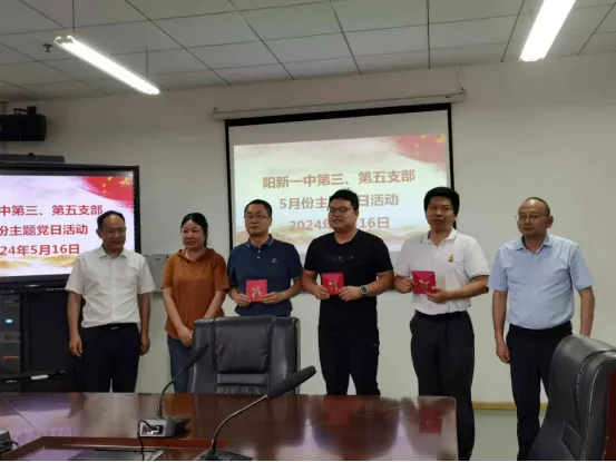 最后,高三年级负责人李雁鸣同志、戴征辉同志和邓丽娟同志为五月份入党的三位同志(魏力同志、董才振同志、王波波同志)送上了“生日贺卡”和祝福,希望他们坚定理想信念,不忘初心使命,永葆党员本色。
