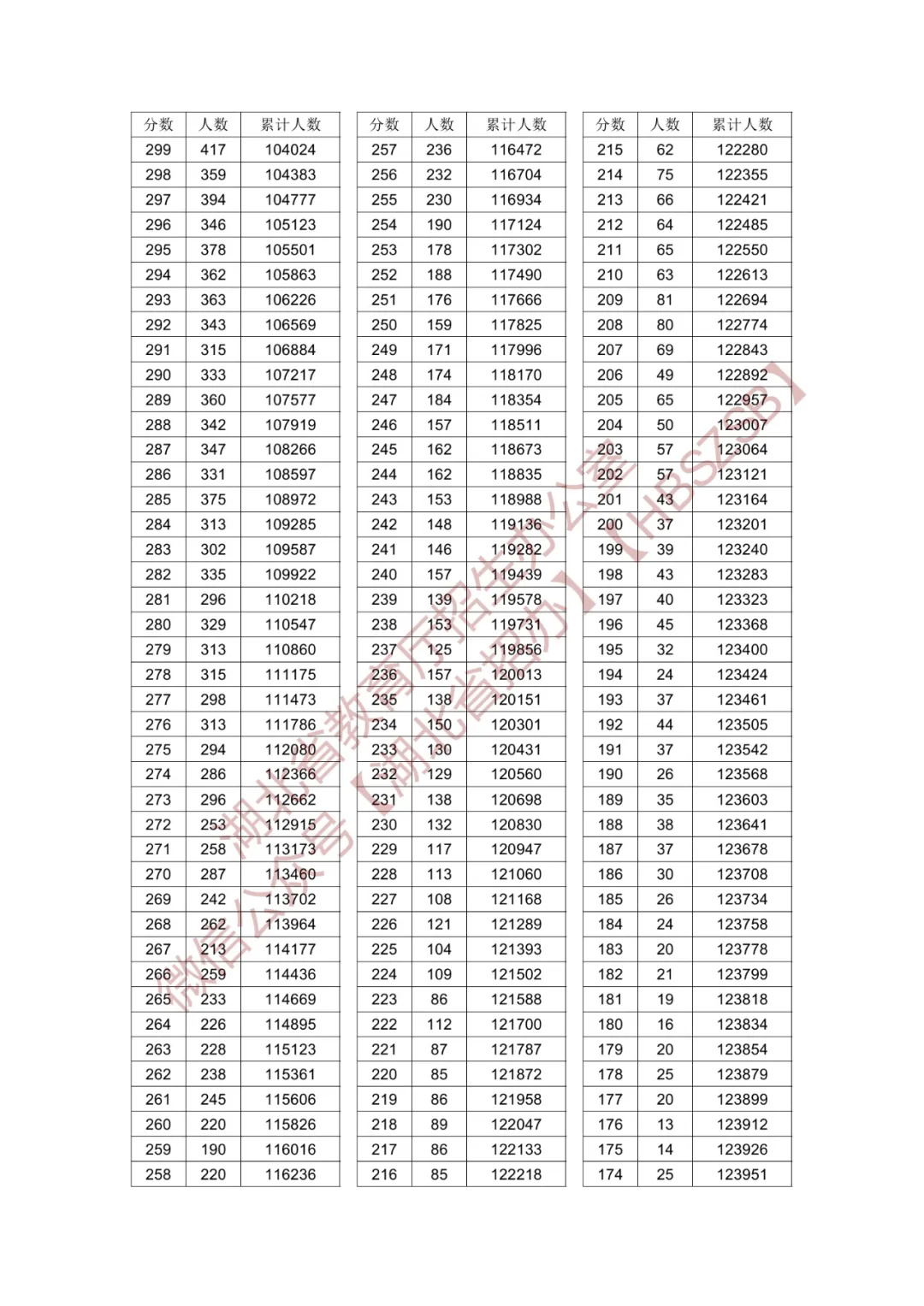 湖北省2024年普通高考总分一分一段统计表(首选物理)