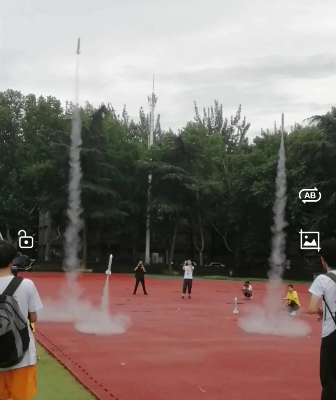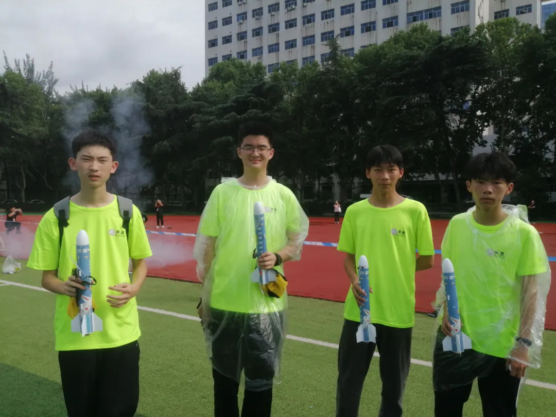 阳新一中营员成功制作的十几枚火箭先后发射升空