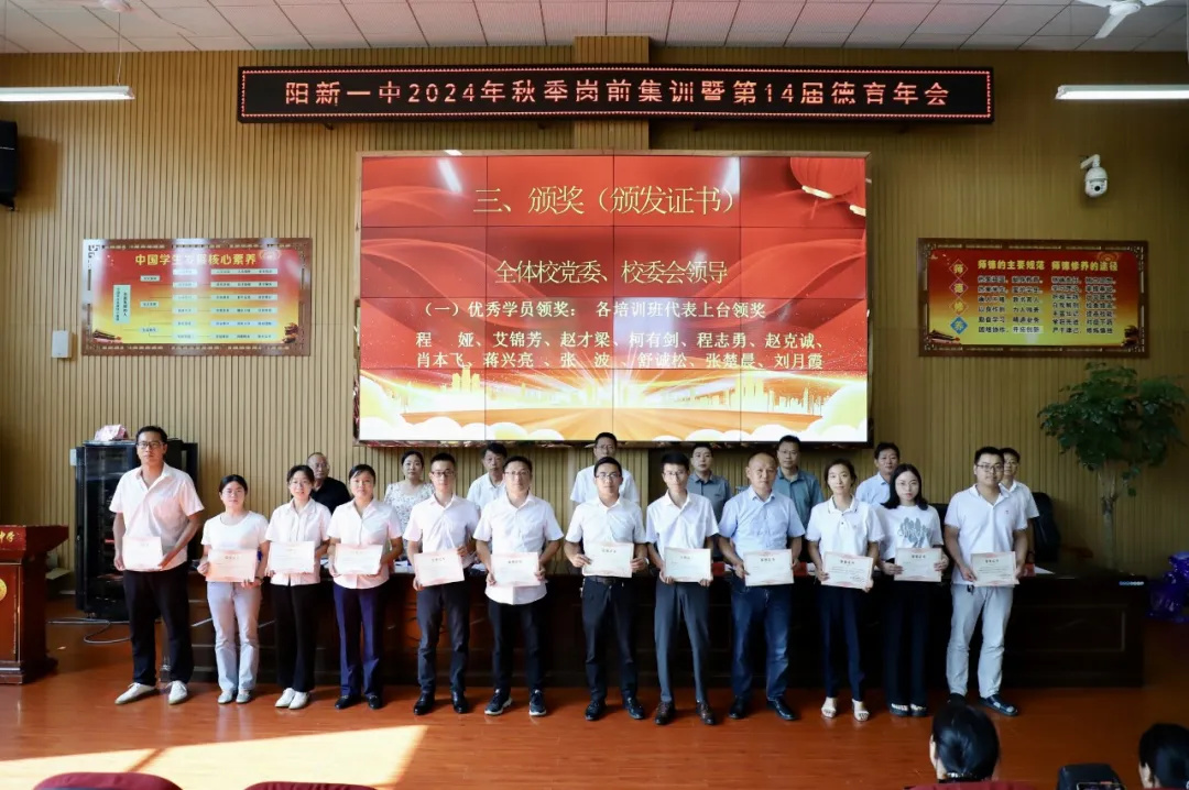 酷暑夏日见证成长,暑期培训完美收官。为表彰先进,树立典型,共享暑期培训成果,2024年8月31日上午,阳新一中在明德楼报告厅召开2024年秋季入学教师岗前全员集训结训式。校党委书记方长风、校长江章令及全体班子成员出席会议,全体教职工参加会议。会议由校党委副书记潘龙星主持。