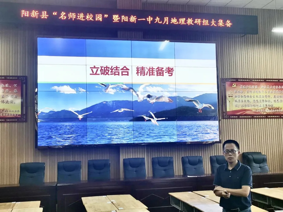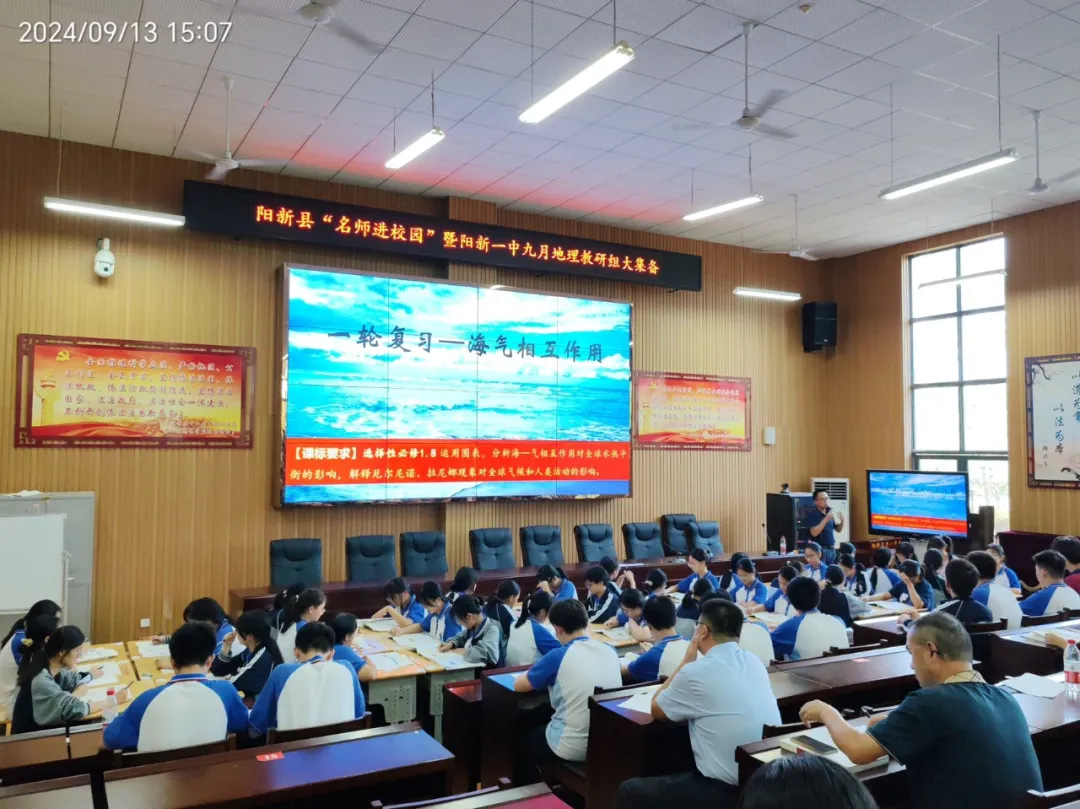9月13日下午,阳新县“名师进校园”暨阳新一中九月地理教研组大集备在我校明礼楼学术报告厅举行。本次活动特邀武汉六中地理复习备考专家肖石荣老师作复习指导。我校全体地理教师和县直高中高三地理教师参加本次活动。大集备活动由阳新一中地理教研组长韦正雄老师主持,阳新一中教科院院长、地理特级教师焦龙河老师亲临指导。