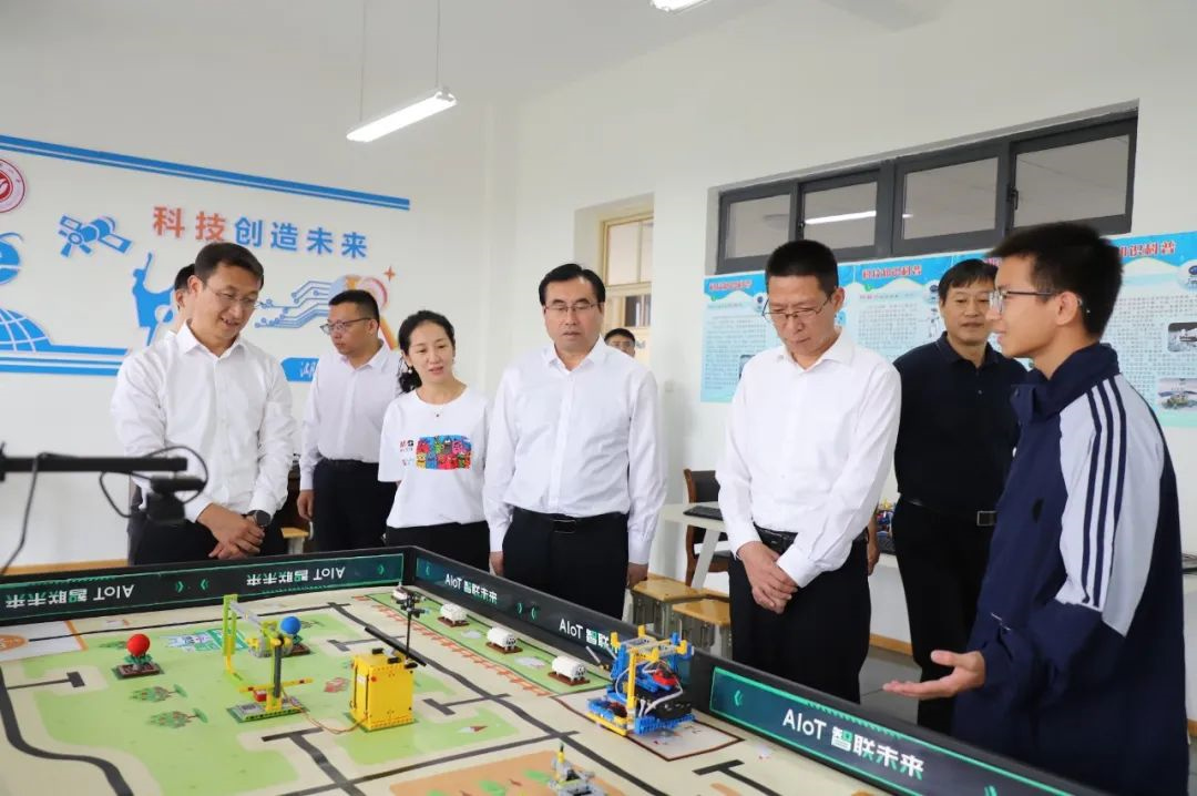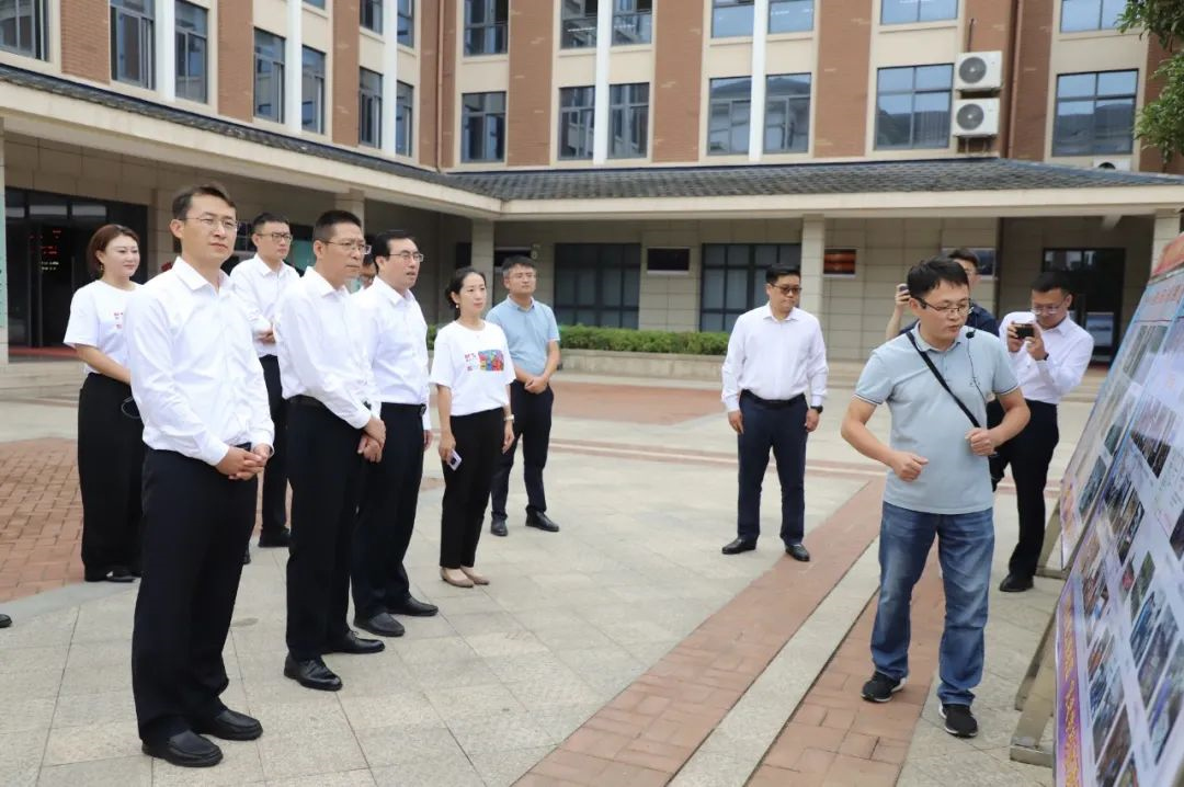 随后,一行人来到了校宣传展板前。展板上生动地展示了我校悠久的办学历史以及丰富多彩的校园文化活动。王理平理事长和李静宜副书记认真观看,对我校在教育教学改革、师资队伍建设、学生综合素质培养等方面所取得的成绩和经验给与高度肯定。并对学校未来的发展提出了宝贵的建议和期望。调研过程中,王理平理事长表示,三峡集团公益基金会一直关注教育事业的发展,愿意为阳新一中的教育创新和学生成长提供更多的支持和帮助。李静宜副书记也强调,晨光集团将积极发挥企业的社会责任,为学校的发展贡献力量。
