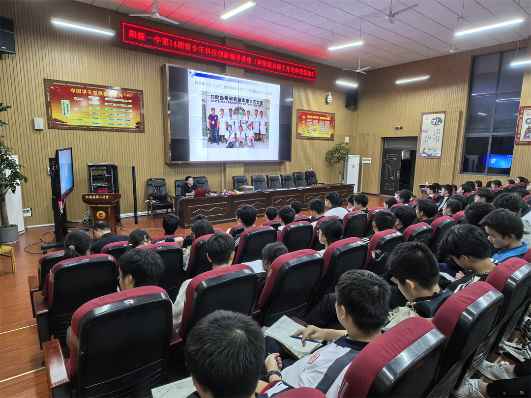 10月29日晚上7:00,为了让学生更好地参加“阳新一中第11届体育科技文化艺术节”科技项目活动,我校黄石市柯贤根名师工作室在明德楼学术报告厅举行“阳新一中第14期科技创新辅导讲座”。辅导讲座由学校信息办主任柯贤根主持,信息办副主任、湖北省优秀科技教师朱建华作“科技创新小论文、小发明、小制作专题辅导讲座”。