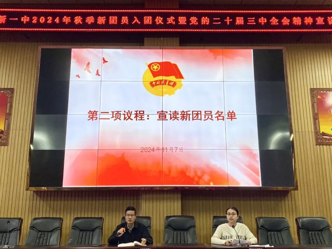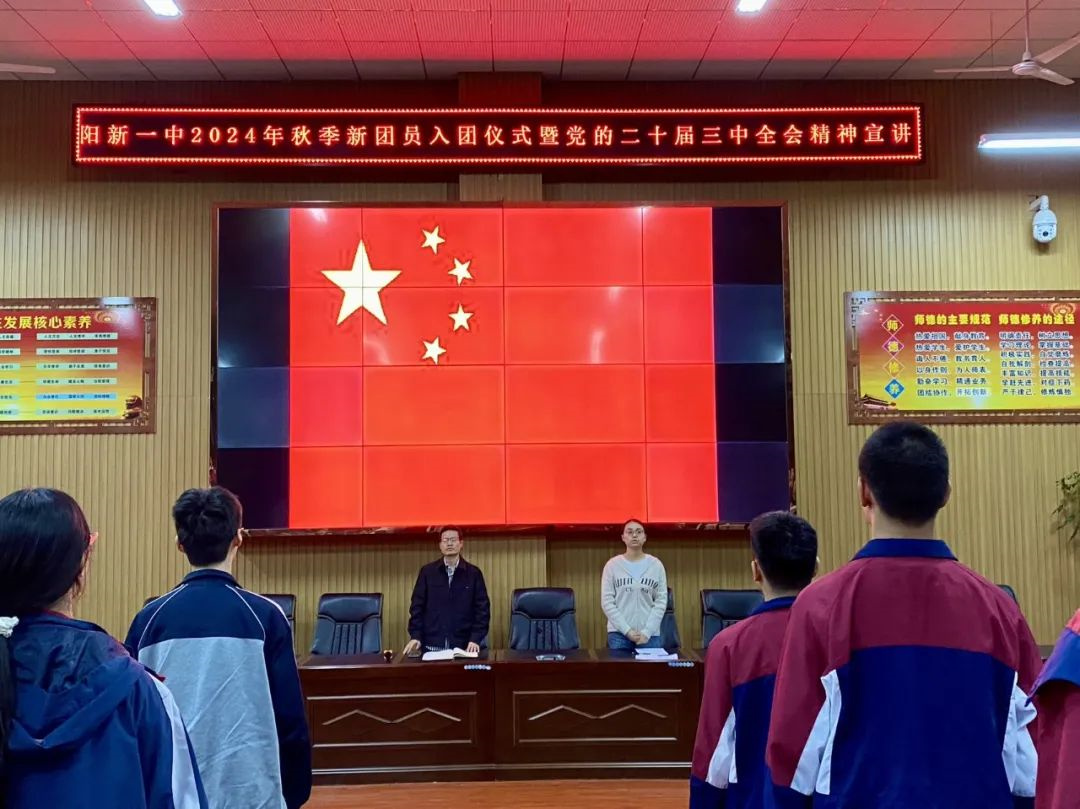 为坚定理想信念,厚植家国情怀,增强青年学子爱党爱国意识,11月7日18:00,校团委开展2024年秋季新团员入团仪式暨党的二十届三中全会精神宣讲会,阳新一中分管德育副校长徐美姝出席活动,本次活动由校团委书记陈湖庚主持。