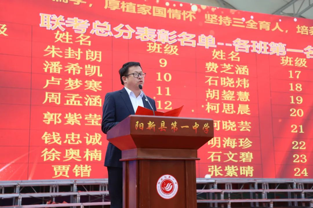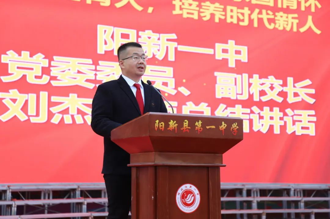 阳新一中党委委员、副校长、高二年级蹲点校领导刘杰作总结发言。刘杰副校长高度肯定高二年级师生在期中考试和艺术节中的优秀表现,并以“四要”寄语同学们行稳致远。