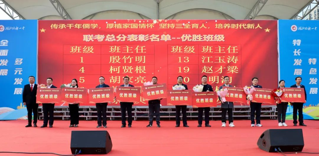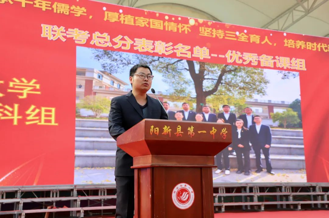 高二年级副主任赵才梁宣读优秀学科组、优胜班级名单,高二年级管理团队为优胜学科组和班级颁奖。