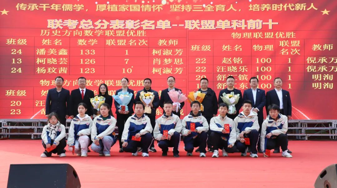 高二年级党支部书记汪洋宣读高二年级取得联盟单科前十名的学生和老师名单。