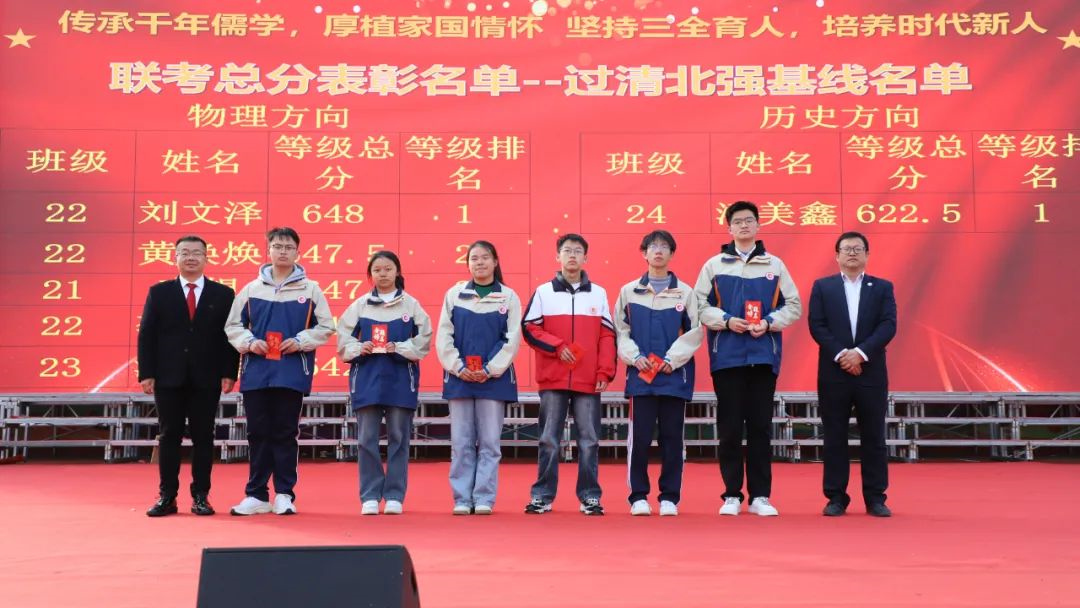 高二年级副主任陈松林通报期中考试成绩。此次鄂东南联盟期中考试,参考学校有黄冈中学、武汉二中、孝感高中、鄂南高中、麻城一中、黄梅一中等省级重点中学。高二年级取得可喜的成绩,物理方向和历史方向共有6人过清北强基线,特别是历史方向潘美鑫同学取得总分联盟第三名,数学单科联盟第一名的好成绩。此次联考,高二年级无论是过清北强基线人数,还是过双一流线人数、过一本线人数,都超过对标学校。成绩的取得,不仅是学生勤奋努力的结果,也是全体教师辛勤付出的回报。