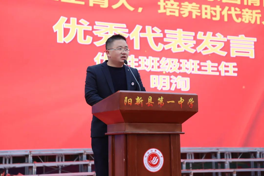 倾心陪伴,激励前行。班主任代表高二(20)班明洵老师作班级管理经验分享,即发掘,发掘班级典型;共情,师生同心共力;引导,注重习惯养成教育;鼓励,肯定学生的努力与进步;底线,严守班级管理底线;愿景,人人比学赶超,个个奋勇争先。