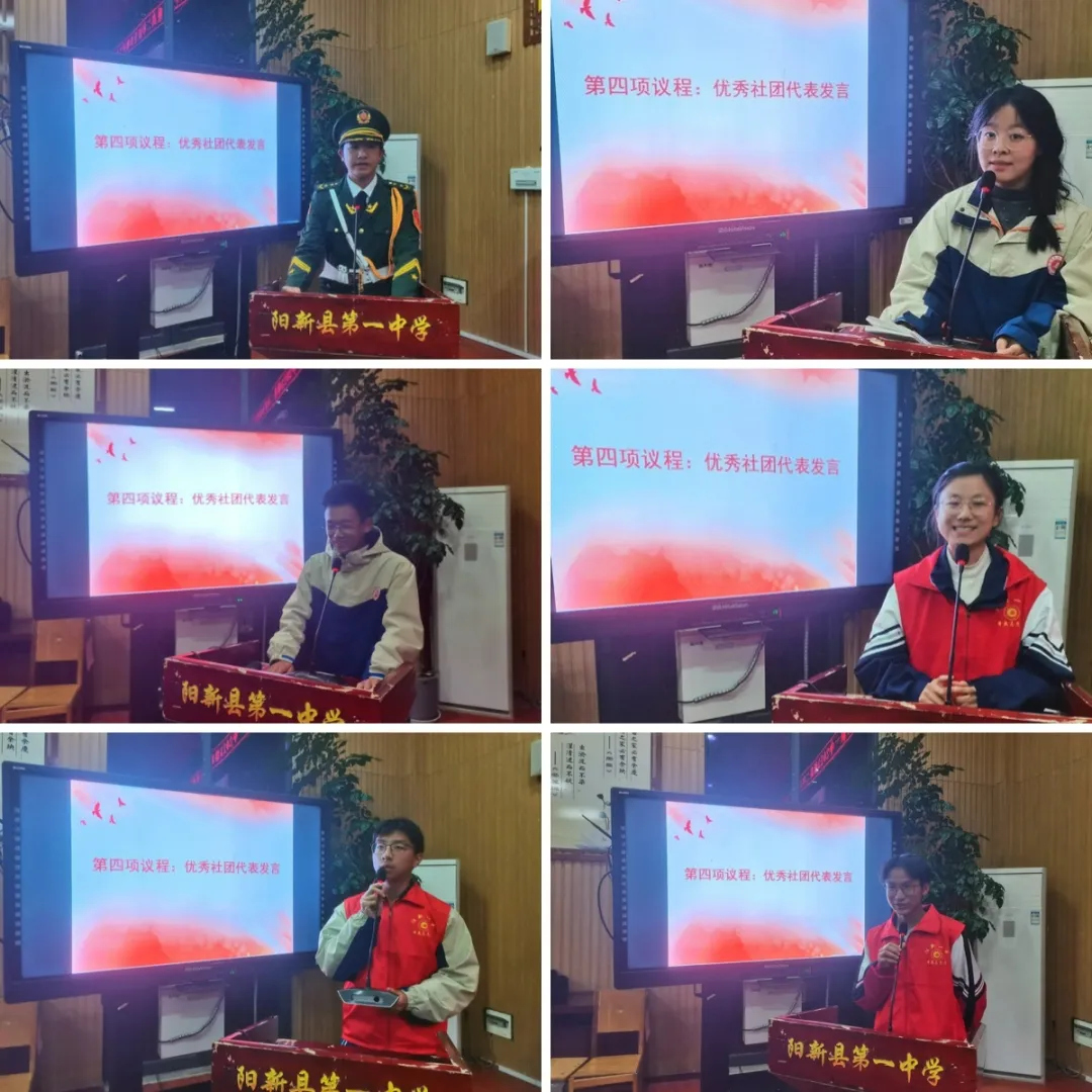 学生社团优秀代表作经验分享,他们分别来自高二(9)班方思彤、高二(13)班王定钧、高二(16)班刘炜哲、高二(2)班费翔、高一(20)班王斯弘、一(4)班孙嘉荣,他们激情昂扬,富有青春的朝气,结合自己社团活动经历收获,谈了成长的心得体会,他们的发言赢得现场雷鸣般的掌声。