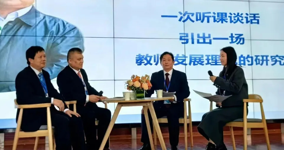 在“校本教师发展‘1314’微论坛”上,我校教师教育学院院长焦龙河老师分享了国培活动如何促进他这位名师的进一步成长,以及学校在名师培养和高质量发展方面所取得的显著成就。主持人李贤智院长向所有与会的领导和教师们推广和倡导了“让教师思想自主生长”的理念,并巧妙地阐释了教师自主生长理论对教师个人及学校所产生的深远影响。