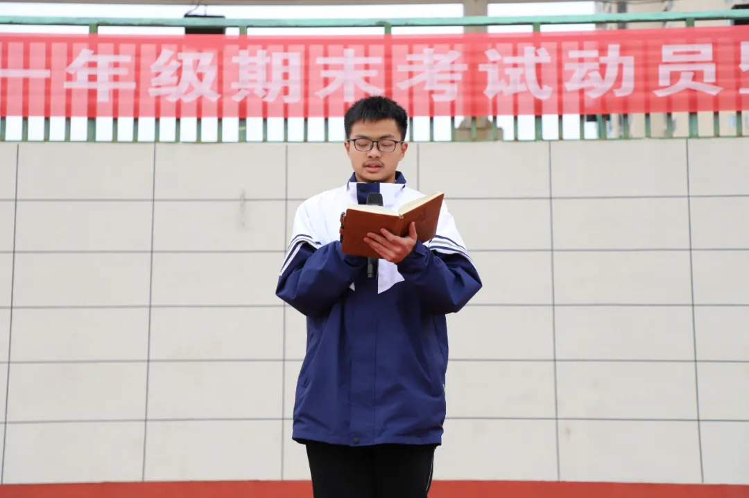 随后,来自21班的优秀学生代表徐森发言。他结合自身学习感悟,强调了学习态度、方法以及心态的重要性。他表示,端正的学习态度是首要目标,好的学习方法能直接影响学习效率,而保持乐观向上的心态,才能在面对考试时做到胜不骄、败不馁。他鼓励同学们在期末备考中不懈怠、不放松,全力以赴迎接挑战。