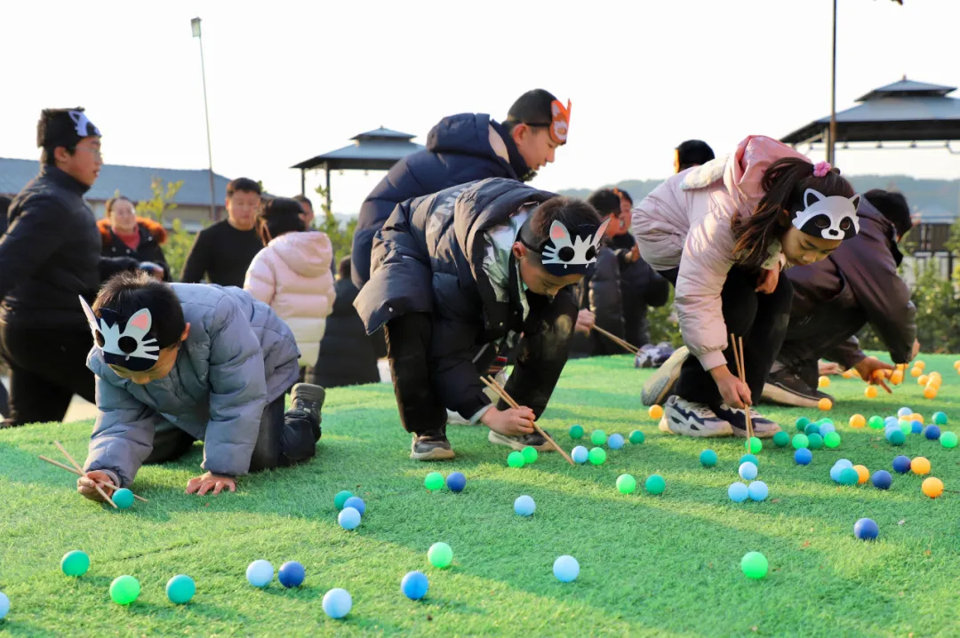 “筷运乒乓”则考验了参与者的耐心与协作能力。教师子女们分成小组,用筷子小心翼翼地夹起乒乓球,接力运送到指定位置。在紧张刺激的比拼中,大家相互鼓励、密切配合,顺利完成了挑战,进一步增强了团队合作意识。