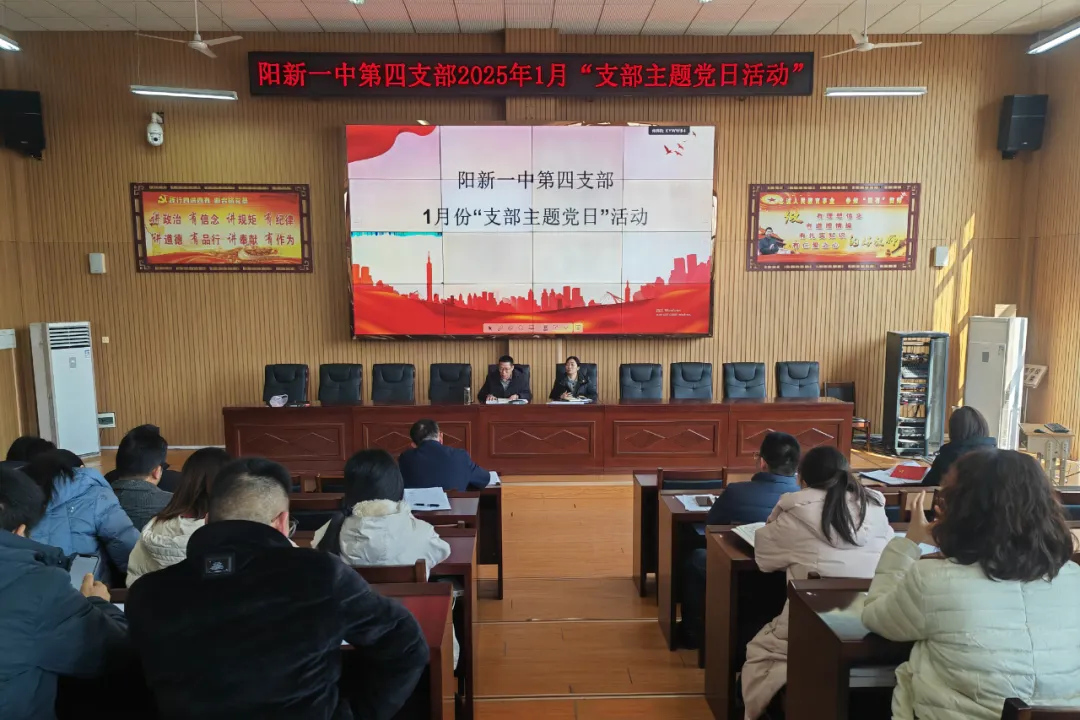 1月13日上午,阳新一中第四支部在明道楼报告厅开展了一场内容丰富、意义深刻的1月主题党日活动,活动由第四支部书记艾锦芳老师主持。