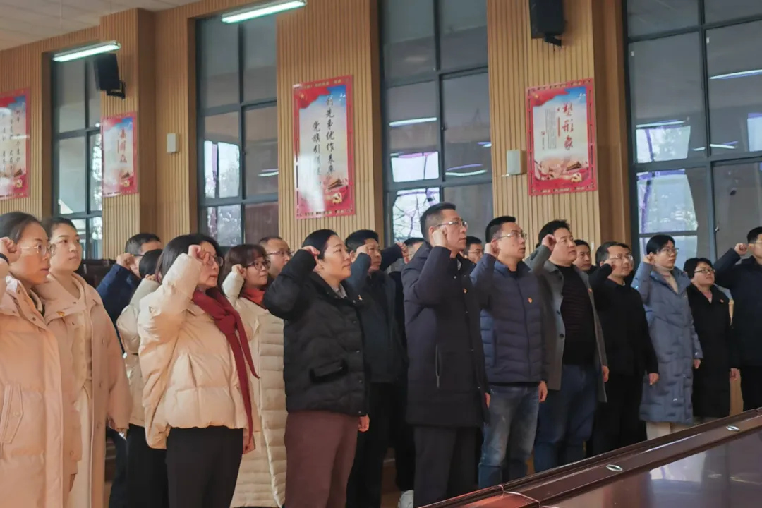 活动伊始,在樊子菡老师的领誓下,全体党员重温入党誓词,庄严的宣誓声响彻报告厅,让每一位党员再次铭记初心与使命。随后,王义梅老师诵读党章第一章第五六七节内容,进一步了解党章有关内容。