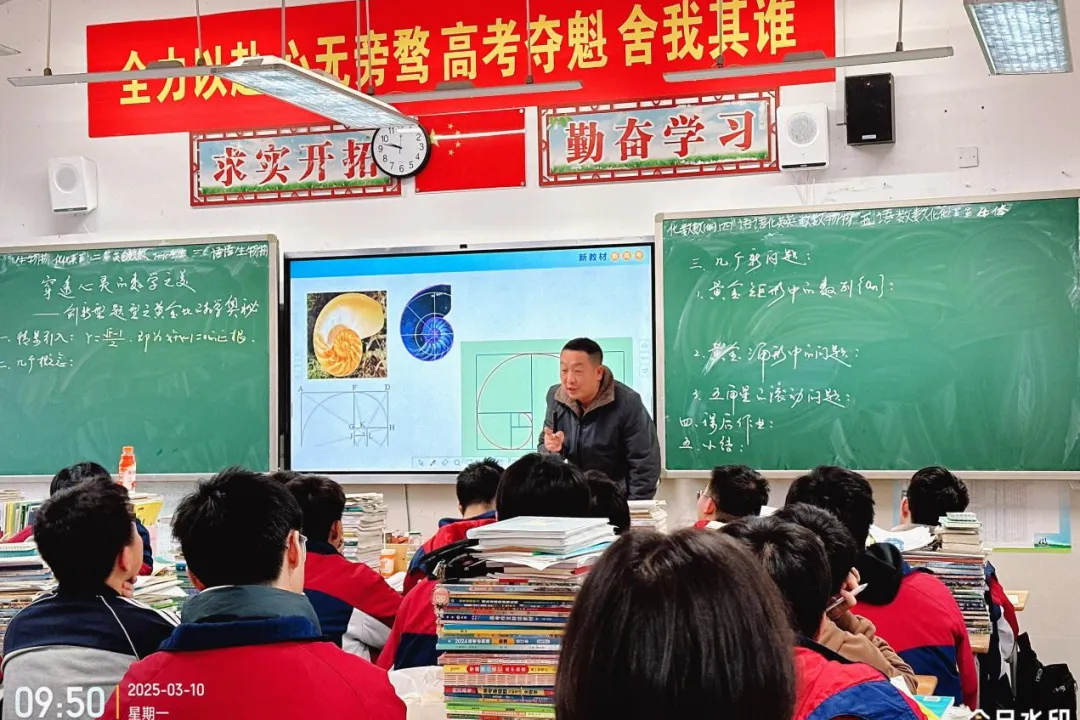 本次送教的老师是工作室成员柳辉老师,他主讲了题为《穿透心灵的数学之美----创新题型之黄金比的数学奥秘》复习课。柳老师从模考中的新定义问题引入,跟同学们介绍了黄金分割比、黄金三角形、黄金矩形、黄金螺母线等概念,让同学们欣赏数学的美,锻炼学生的发散性思维,让学生从出题者的角度来思考并尝试命题。柳辉老师还写了一首诗赠班级学生,给学生提供了满满的情绪价值。