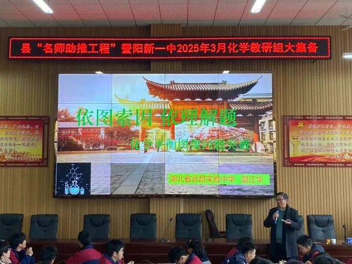 为了进一步巩固我县教学改革成果,助力2025届高三复习备考,科学指导二轮复习,促进高一、高二年级常规教学工作,我校于3月6日下午15:00在明礼楼报告厅举行了县“名师助推工程”暨阳新一中2025年3月化学组大集备。本次活动有幸邀请到武昌实验中学高级教师温江华老师作复习指导,温老师是武昌区学科带头人、武汉市中心备课组成员、国家考试院高考试题评价组专家成员。活动由化学组教研组长殷竹明主持,我校全体化学教师及县内各高中化学教师参加。