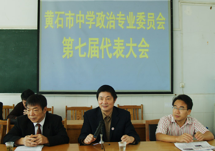 我校校长、党总支书记赵立中在会上作了热情洋溢的讲话。赵校长还是黄石市政治学科副会长。 |