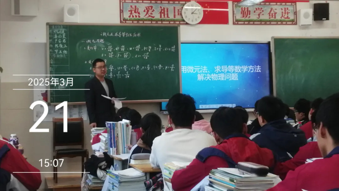 赵才梁主任在高三(21)班主讲《用微元法和求导等数学方法解决物理问题》二轮复习示范课。本节示范课准备充分,导学案和课件制作精良,表达清晰,重点突出,难点得到了有效突破,学生参与度很高。本节示范课注重一题多解和变式拓展,课堂高效,既全面复习了本专题的必备知识,又显著提升了学生运用数学知识解决物理问题的能力。