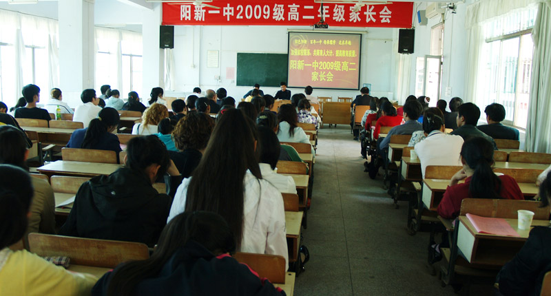 10月17日下午,我校2009级高二年级召开家长会。会议主会场设在教学楼二楼多媒体教室,所有教室的家长、老师和学生通过校园广播系统收听了主会场的讲话。本次会议的主题是“加强家校联系,共商教育大计,提高教学质量”。