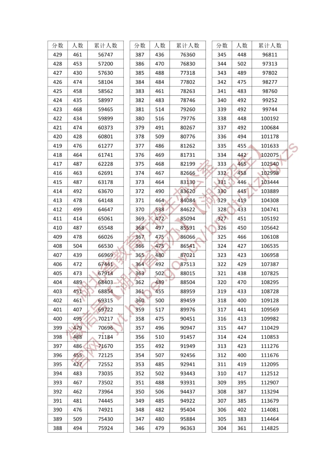 湖北省2025年普通高考总分一分一段统计表(首选历史)