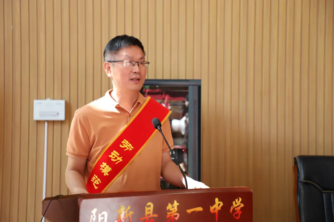 阳新一中党委书记方长风同志在致辞中,首先向莅临本次活动的市县工会领导、劳模工匠以及教师代表们致以最热烈的欢迎和最诚挚的敬意!并介绍阳新一中近年来在校园文化、育人成果、教师发展等方面取得的成绩。最后他强调:阳新一中始终坚守立德树人初心,高度重视以劳动精神培根铸魂、以工匠精神启智润心。期待全体教师能从劳模工匠的分享中,深刻体悟 "执着专注、精益求精、一丝不苟、追求卓越" 的精神内核,将这份坚守与热爱融入教育教学实践与自身专业成长,以劳动之笔绘就教育底色,用奋斗之力培育时代新人。