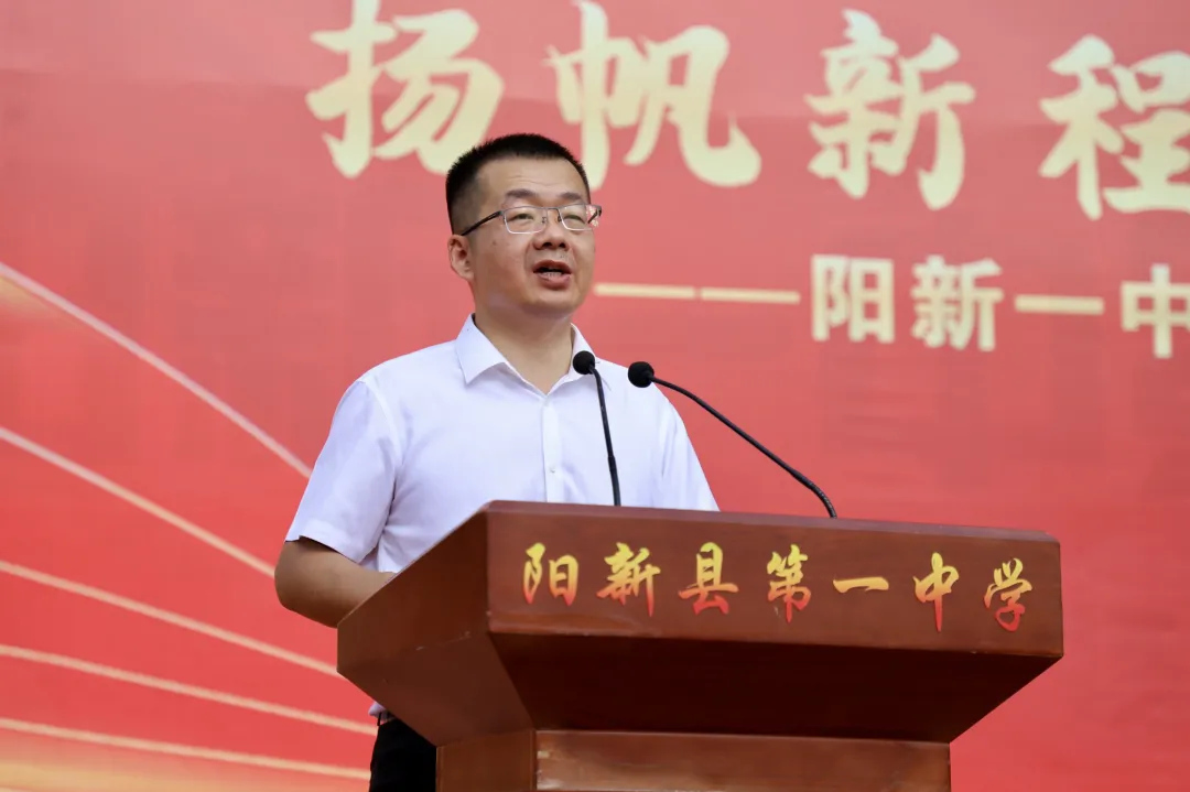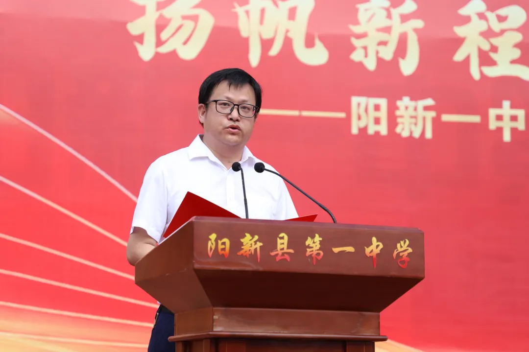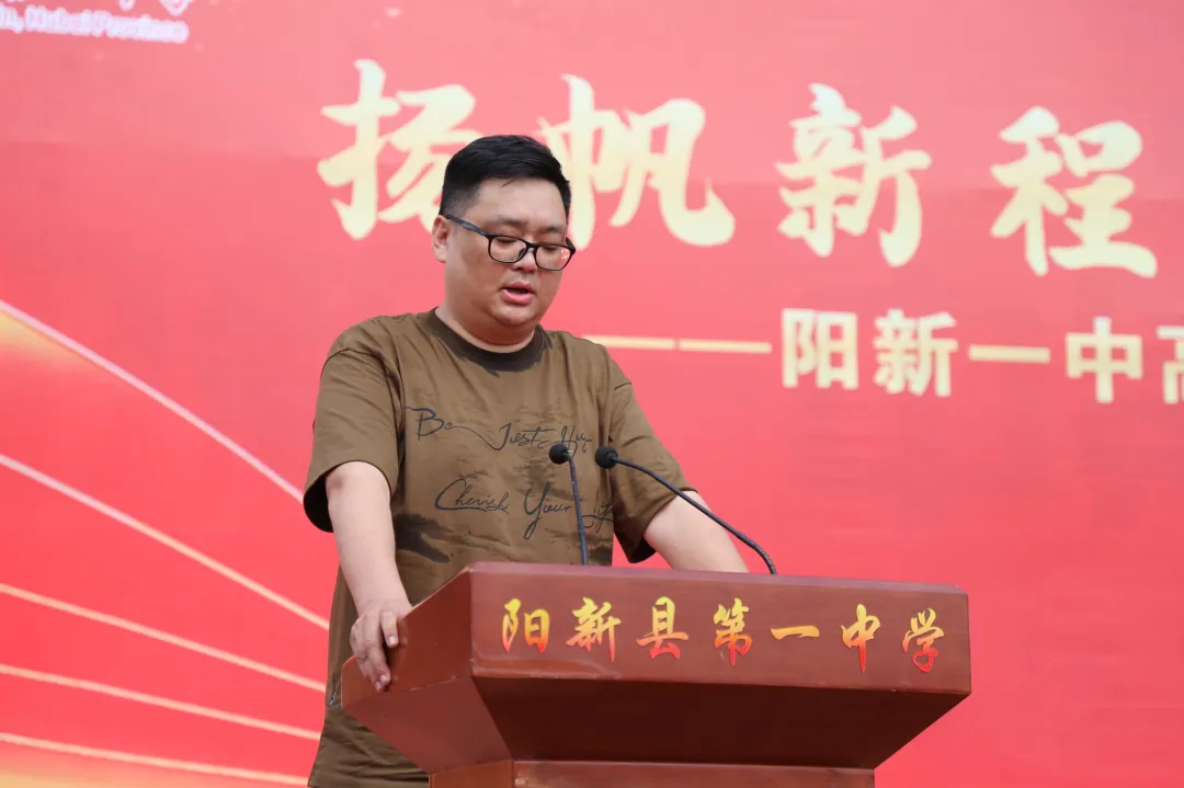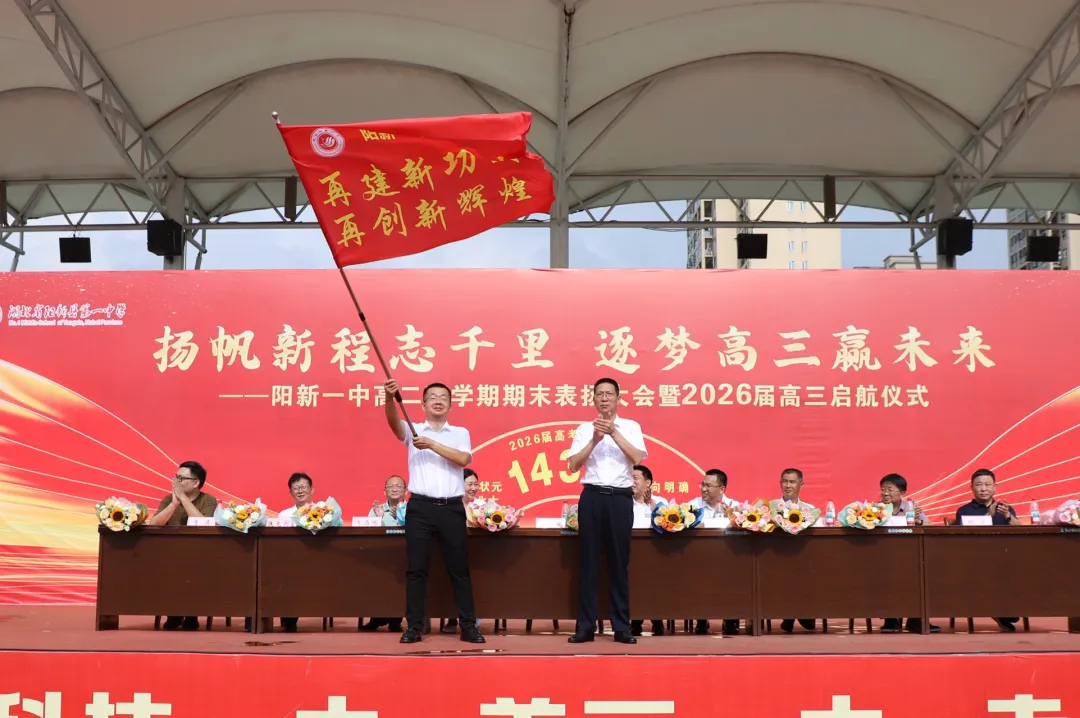 战鼓擂响,征程启航。2025年7月13日8时整,阳新一中在学校运动场举行高二下学期期末表扬大会暨2026届高三启航仪式。活动由校党委委员、副校长刘杰主持。校党委书记方长风、校长江章令及全体校领导、家委会会长张军、学生家长代表李涛出席活动,2026届全体师生和千余名家长参与活动。