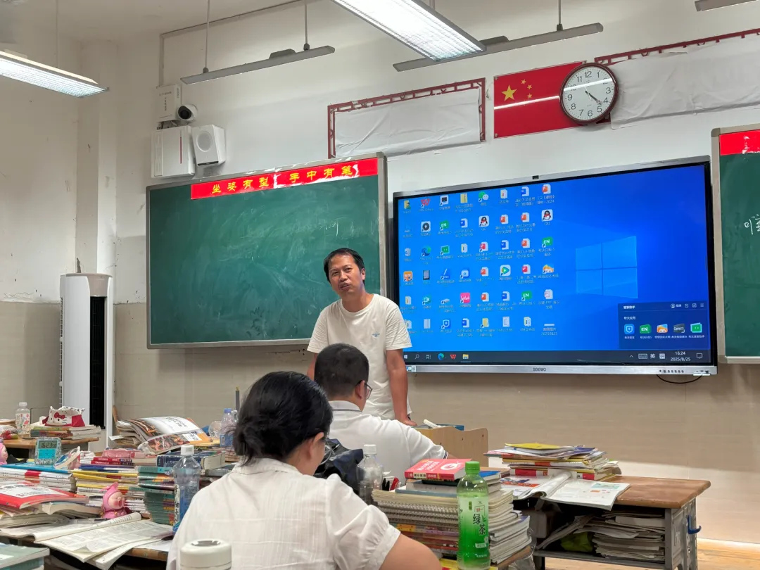 2025年8月25日,阳新一中全体政治教师在高二(5)班教室举行阳新一中2025年暑期集训政治学科研讨会,会议由教研组长定绍朋老师主持,学科蹲点领导王小宁参加活动。