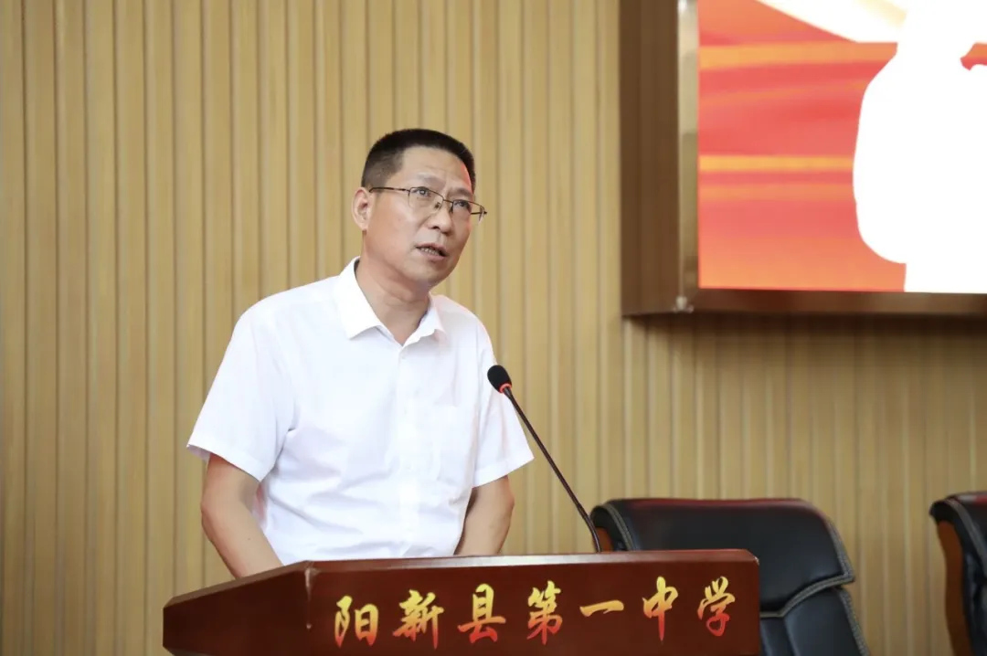 阳新一中党委书记方长风致辞。方书记代表学校向全体教职员工致以崇高的敬意和节日的问候,向支持学校工作的教职员工及家属表示衷心的感谢,向关心支持我校教育发展的各级领导及社会各界人士表示诚挚的谢意,向本次大会上将要受到表扬的先进团队和个人表示热烈的祝贺,并提出了三点希望:一是凝聚团结奋进合力,锚定“质量立校”的意识不动摇;二是大力弘扬教育家精神,向身边榜样学习;三是坚持“三全育人”的理念,培养全面发展的优秀人才。