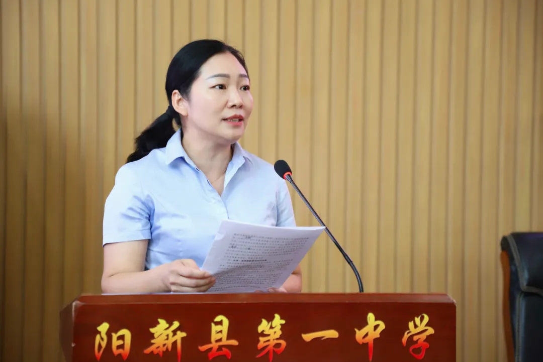 阳新一中分管副校长徐美姝就2025届高三复习备考作总结。她回顾了高三一年来的备考工作,并对老师们的无私奉献、潜心育人予以感谢,表达了对2026年高考的祝福。