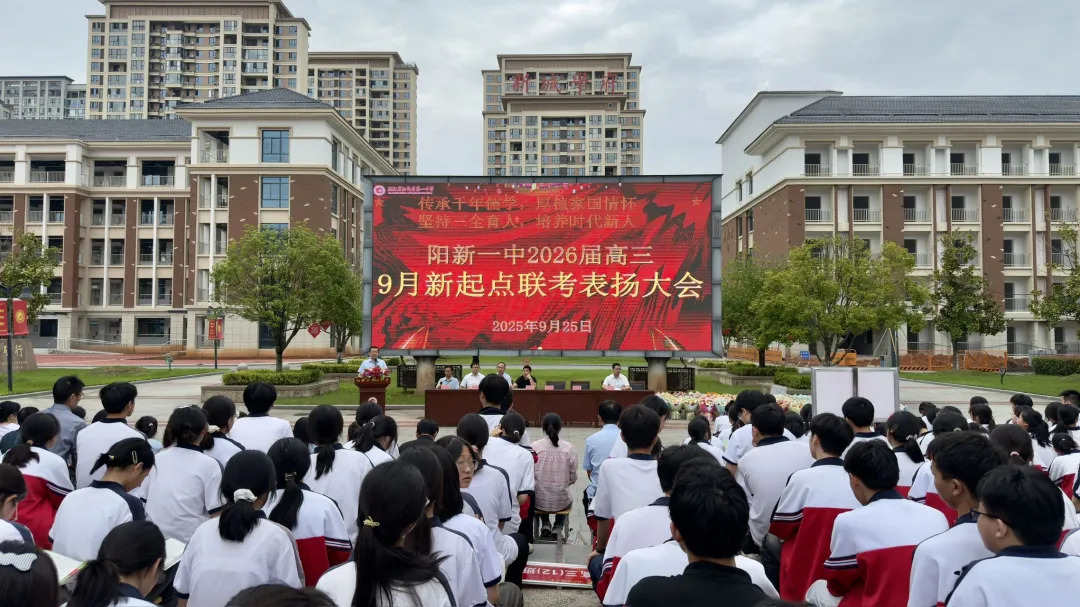 为表扬我校高三在9月新起点考试中表现优秀的学生、教师、备课组和班集体,激发全体高三师生备考热情,9月24日下午3点,2026届高三年级在至美楼广场举行9月“新起点”考试表扬大会。校党委副书记、校长江章令、高三年级管理团队、高三全体师生参加此次大会。大会由校党委委员、副校长刘杰主持。