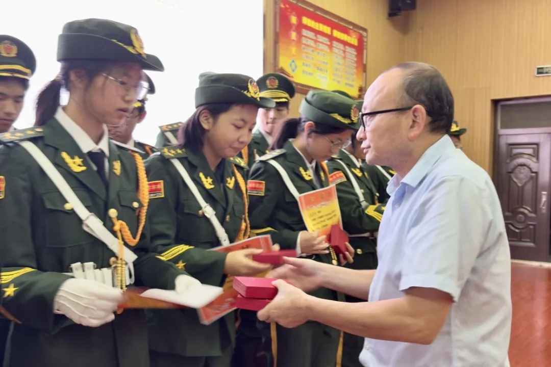 校团委对国旗护卫队钟传楷、李亚仪等22名队员进行表扬,校党委委员李雁鸣为优秀队员颁发荣誉证书与奖章。