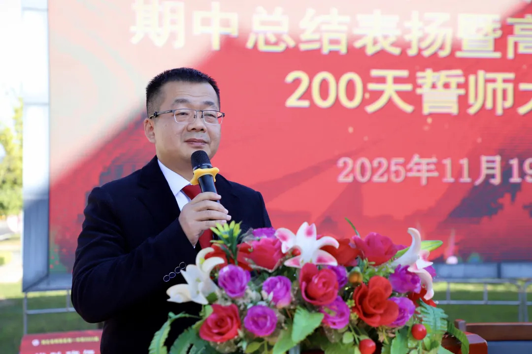 金秋十月,桂香沁脾,硕果缀枝;青春逐梦,壮志凌云,豪情满胸。11月19日上午,我校2026届高三年级期中表扬暨高考倒计时200天冲刺誓师大会在至美楼广场举行,校党委书记方长风、校党委副书记、校长江章令及全体校委会成员、高三全体师生参加大会,共同见证属于奋斗者的荣耀时刻,齐声吹响冲刺高考的嘹亮号角。