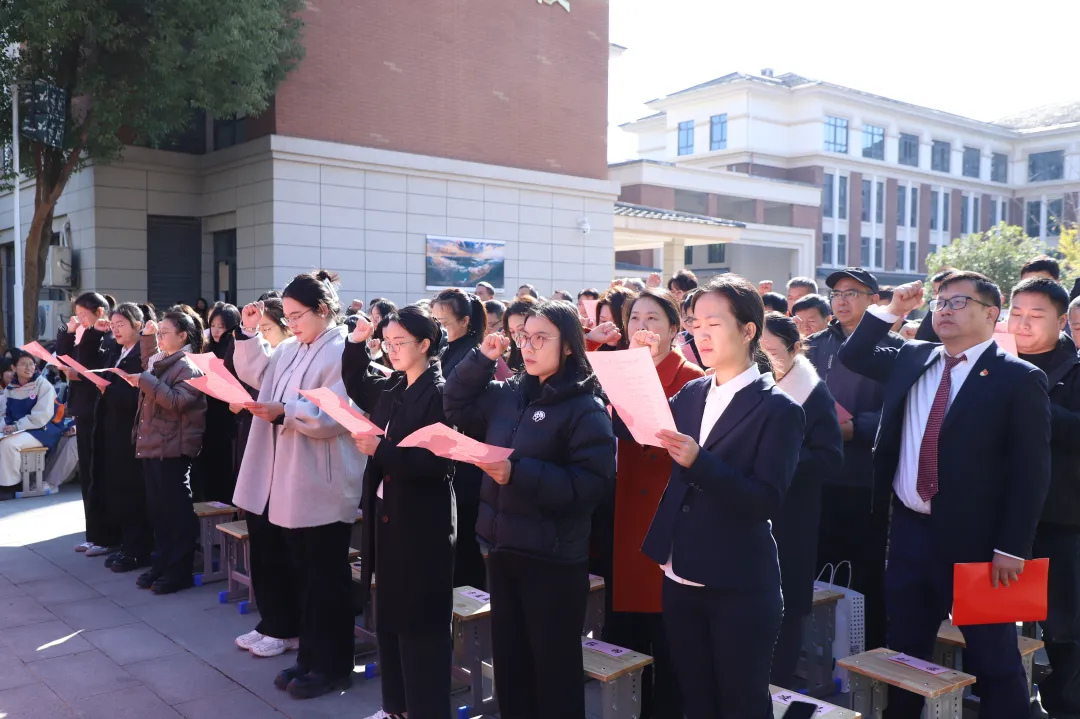 宣誓环节,教师宣誓、学子宣誓,句句誓言响彻会场,发出了高考冲刺最强音,将会场氛围推上了高潮,彰显了师生的责任与担当。