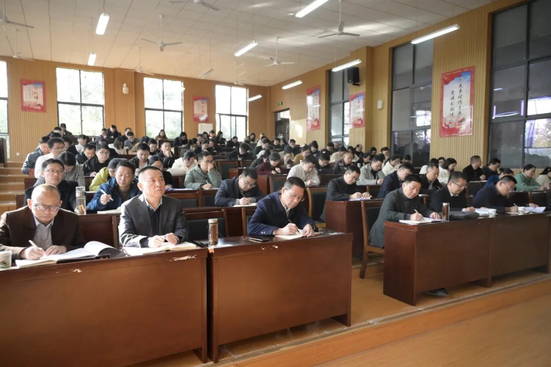 为深入学习贯彻党的二十届四中全会精神,引导全体党员干部与教师统一思想与行动,12月1日上午,我校在明道楼报告厅召开“学习贯彻党的二十届四中全会精神”专题宣讲报告会,县教育局党组书记、局长江书强作宣讲,我校全体党员及高三全体教师参加会议。会议由校党委书记方长风主持。