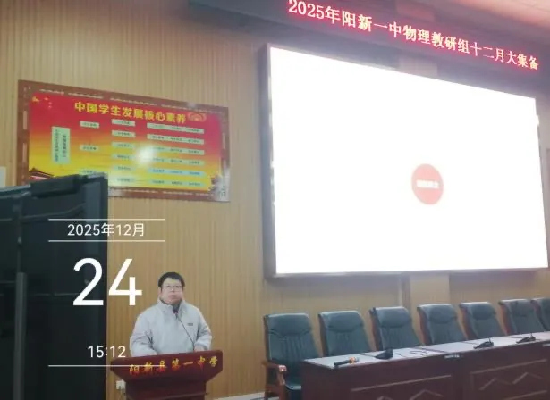 为深入理解国家课程改革新方向,积极应对教育教学新挑战,12月24日下午,我校物理教研组开展十二月份大集备活动。我校全体物理教师齐聚一堂,共研新课标,共探新课堂,共谋新发展。活动由教研组长詹康宁主持。