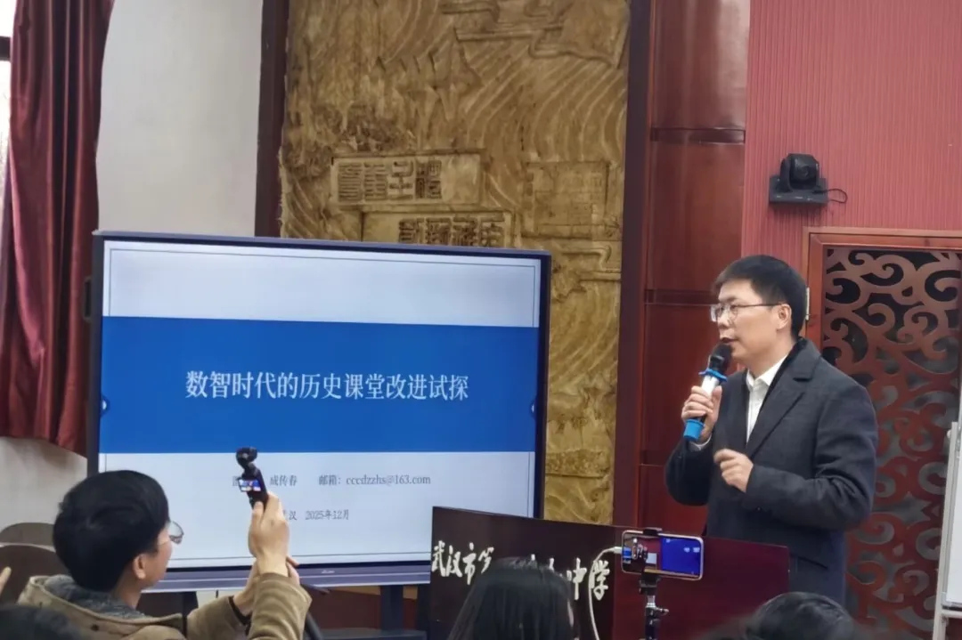 12月26日,2025 年“湖北省好课堂”中学历史典型课例现场展示活动在武汉四十九中落幕。本次活动以“乘楚风、通古今、汇数智、育新人”为主题,汇聚全省各市州优秀历史教师,通过7堂精品课例,展现楚文化浸润下的历史教学改革新图景,省教科院专家及各地教研员、教师共400余人参会。