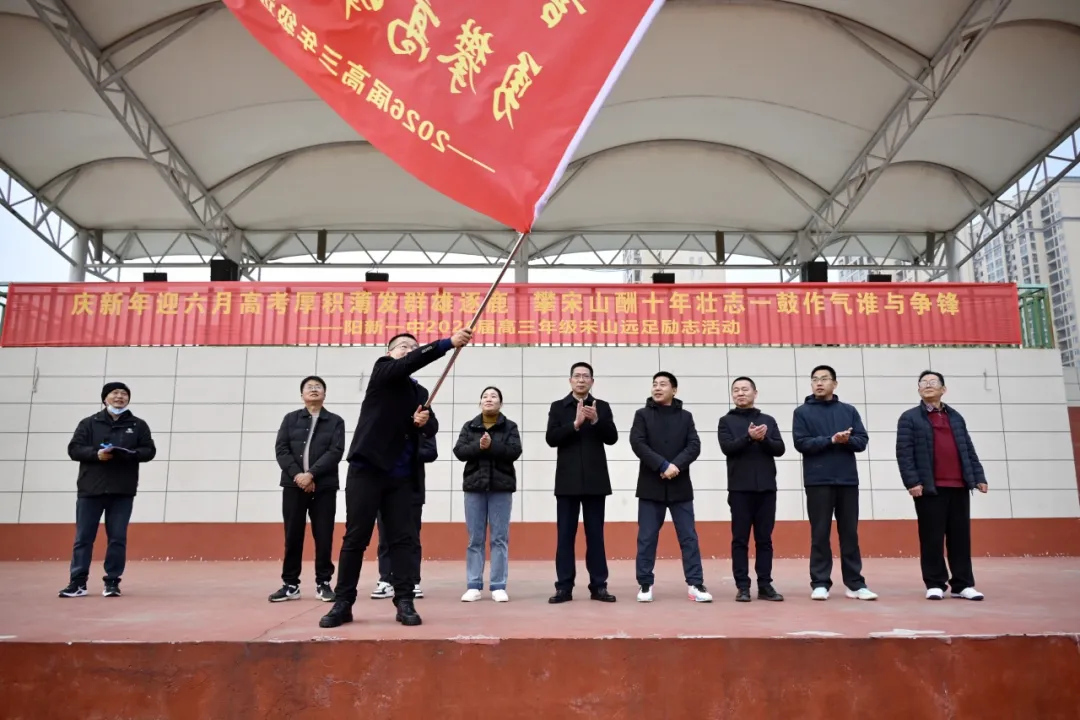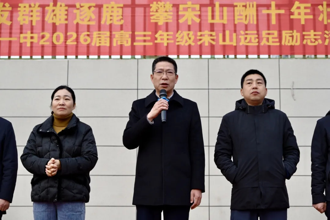 校党委书记方长风发表题为《骐骥登高逐远梦,策马奋进迎新程》的励志讲话,向高三全体学子送上殷切寄语:一是攀登宋山,是磨砺意志的修行。“千磨万击还坚劲,任尔东西南北风”,高考的荣光从来属于迎难而上的挑战者,梦想的实现永远青睐坚持不懈的追梦人,唯有不畏艰难,方能百炼成钢;二是回望调考,是底气倍增的基石。“宝剑锋从磨砺出,梅花香自苦寒来”,调考成绩的取得凝结着每一份汗水与付出,唯有乘势而上、接续奋斗,方能如骏马奔腾,再创佳绩、续写辉煌;三是冲刺高考,是策马圆梦的奔赴。“少年自有凌云志,不负韶华行且知”,愿同学们以今日登高之视野,立下骐骥驰骋之壮志,以调考佳绩为起点,凝聚奋楫争先之力量,让青春在拼搏中闪光,让梦想在坚持中绽放!最后,方书记以“登高方知天地阔,策马更觉征途近”激励全体高三学子,并送上最真挚的新年祝福与高考期许。
