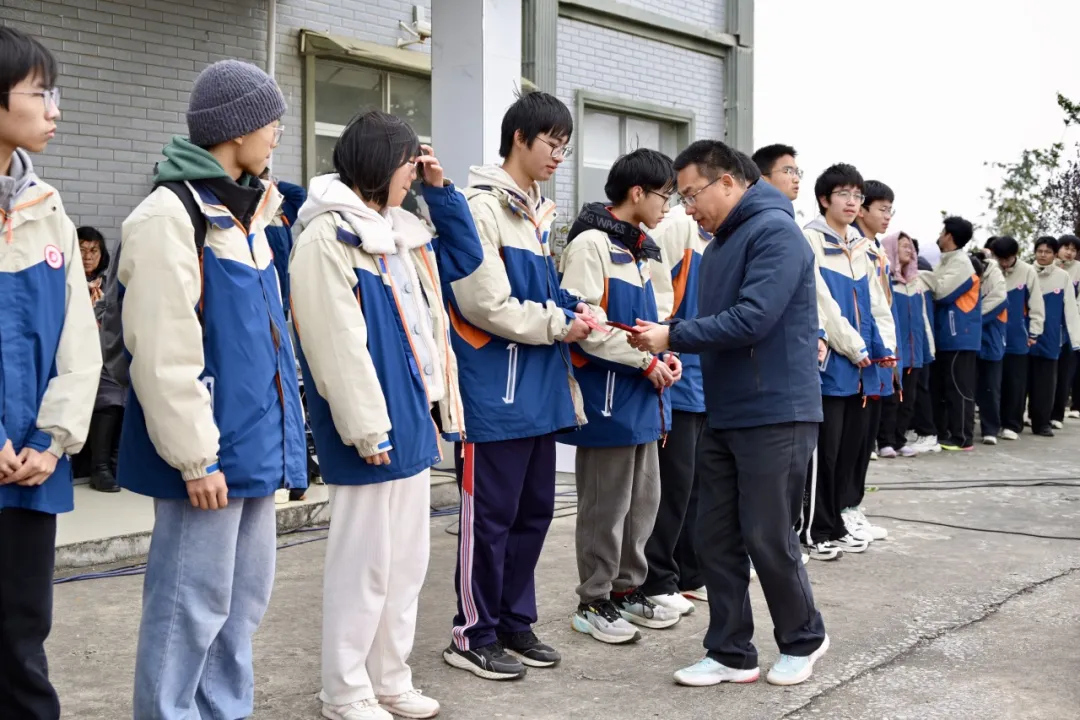 晨曦微露,红旗漫卷,高三全体学子身着统一校服,列队整齐,眼神坚毅而明亮,满怀着对远方的憧憬与对挑战的热忱。我校全体党委、校委领导亲临启动式现场,为学子们加油鼓劲。伴随着庄严的升国旗、奏唱国歌仪式,远足励志活动正式拉开帷幕。校长江章令亲手将象征着拼搏与希望的旗帜授予高三年级蹲点领导刘杰副校长手中,校党委书记方长风高声宣布宋山远足励志活动启动。随后,由25个班级组成的1300余人的队伍,迈着整齐的步伐,有序踏上了这段充满意义的远足之旅。