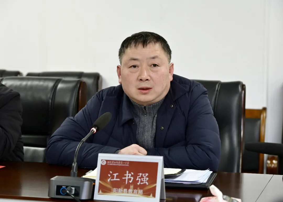 县教育局党组书记、局长江书强作总结讲话。他高度评价了此次座谈会的意义和价值,指出这次会议“恰逢其时,意义深远”。江局长强调,阳新一中作为县域教育的龙头学校,要勇于担当,率先突破。今天的座谈会不是终点,而是新征程的起点。他表示,教育局将全力支持学校改革创新,希望阳新一中能够将今天的智慧成果转化为实实在在的发展动力。